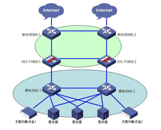 3、将负载均衡设备与防火墙互联、负载均衡设备与服务器区互联、交换机与服务器互联等逻辑连接,划分在不同的VLAN上,这样即使产生了异常广播,也不会迅速规模增长,不会导致广播风暴引起系统不可用。这种方式对网络变更较大,建议慎重考虑。