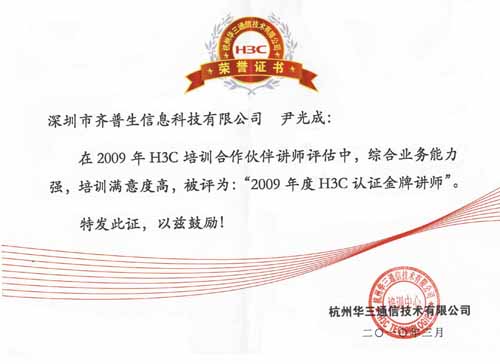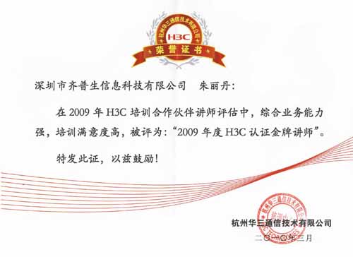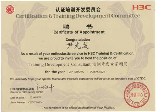 齐普生培训中心讲师被H3C聘任为“培训开发专家顾问”